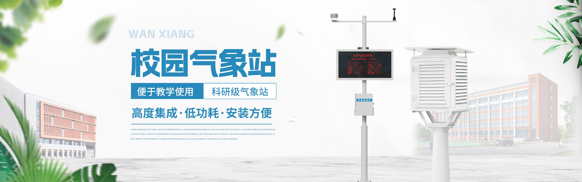查看更多山東萬象環(huán)境科技有限公司官網主要產品有防爆氣象站,校園氣象站,農業氣象站,負氧離子監(jiān)測站,超聲波氣象站,歡迎咨詢15666889815!
